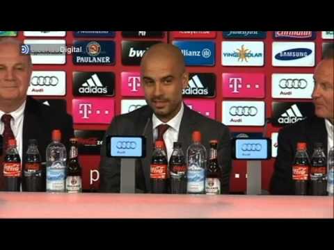 Es war die größte Pressekonferenz in der Vereinsgeschichte des FC Bayern. Auf der Bühne im Presseraum der Münchener Fußball-Arena saßen sie in Reih und Glied: Bayern-Pressesprecher Markus Hörwick, Präsident Uli Hoeneß, der neue Trainer Pep Guardiola, Vorstandschef Karl-Heinz Rummenigge und Sportvorstand Matthias Sammer. Mehr als 200 Journalisten waren live mit dabei, zahlreiche Fernsehstationen übertrugen das Ereignis in alle Welt.
